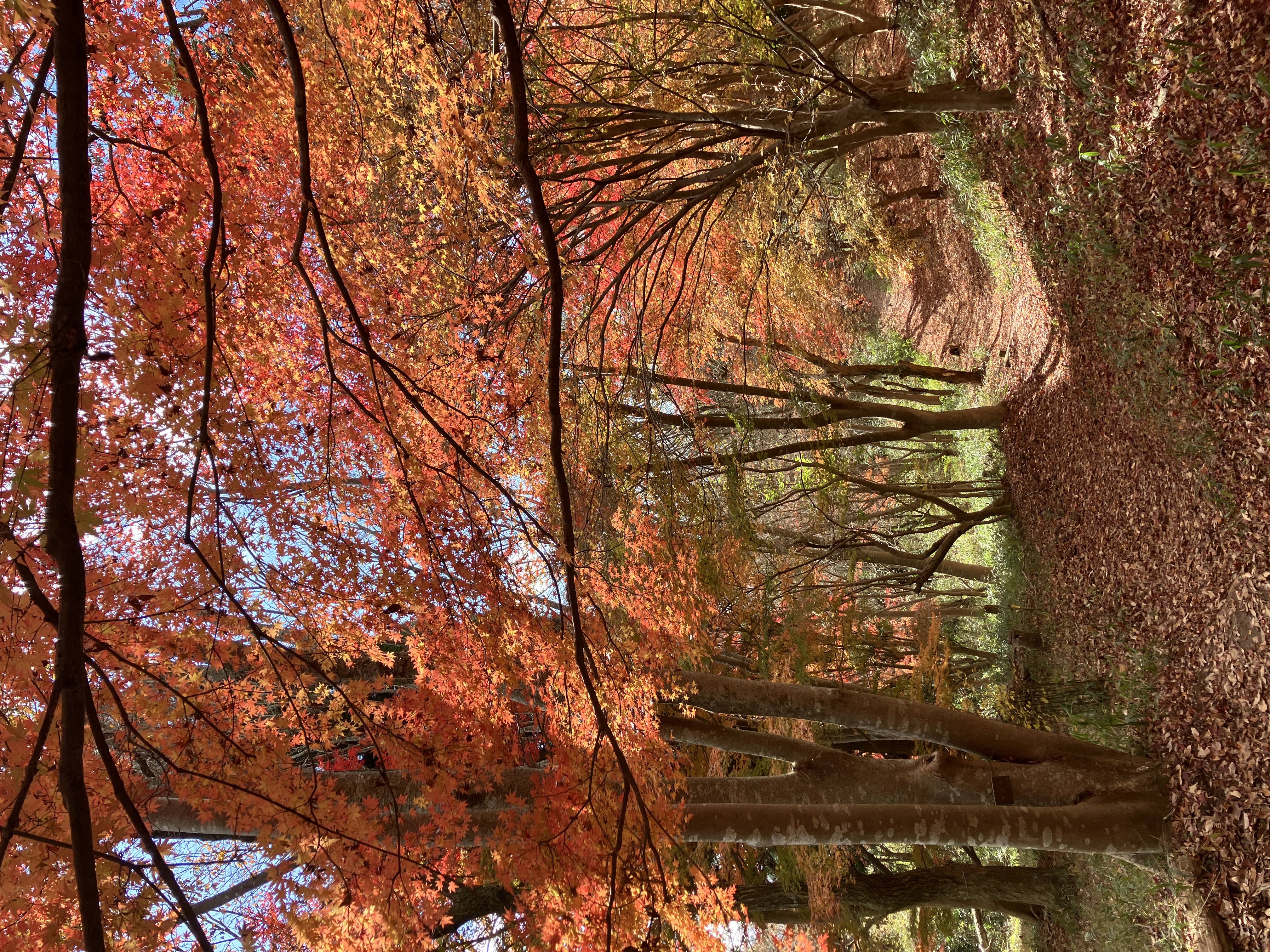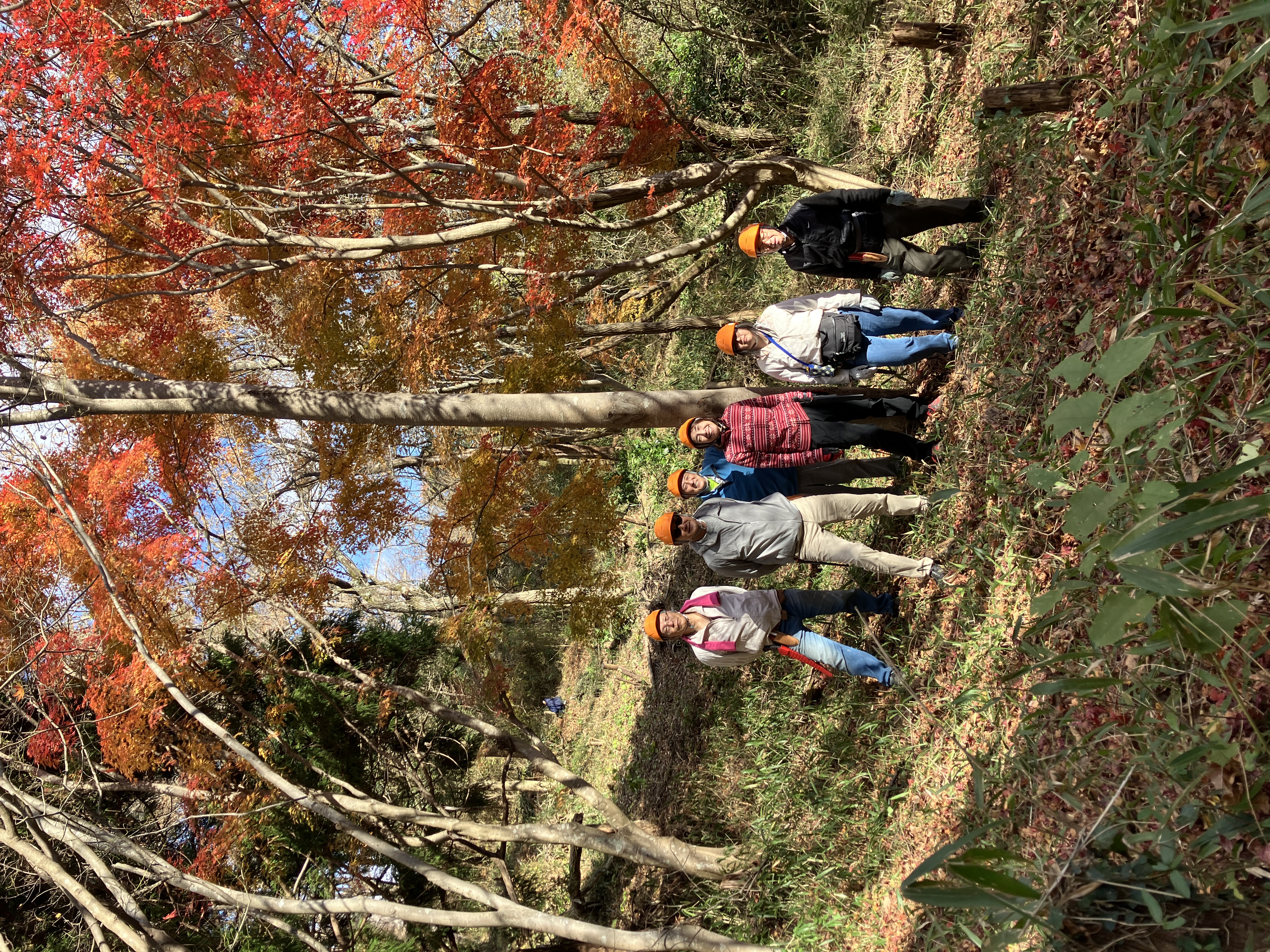 11月に入ってからの冷え込みで紅葉が一段と進み、活動地のコハウチワカエデやイロハモミジが鮮やかなグラデーションを描き、まるで自然が織りなす絵画のような景色を楽しませてくれました。参加者からも「作業しながら四季の移ろいを感じられるのが、この活動の魅力」との声が聞かれました。